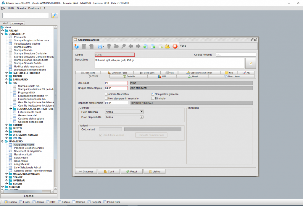 - Possibilità di accesso rapido a prezzi, costi, giacenze e movimenti dell’articolo dalla sua scheda